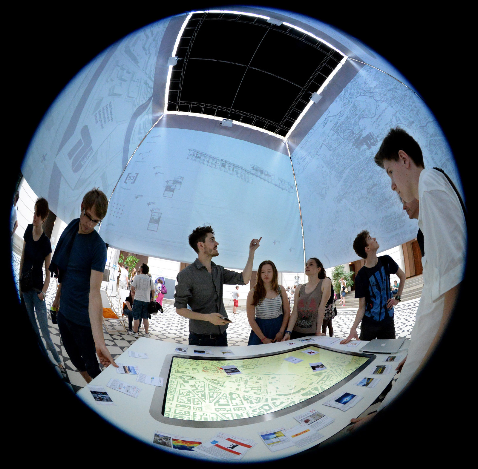 The Conscious City Lab, housed within a striking ten-meter-high structure constructed from stainless steel tubing (provided by System 180), serves as the epicenter of this visionary endeavor. At its center lies an interactive table adorned with playing cards representing various facets of the Smart City, augmenting the experience with additional visual content. This playful approach not only enhances understanding and interdisciplinary communication but also fosters collaborative brainstorming sessions among experts, citizens, and stakeholders from politics, industry, and academia.